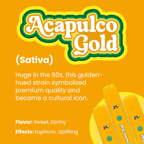By isolating the unique terpene profile that defines this legendary strain, we’ve created a cartridge that mimics the original flavor and effects — without needing the flower itself. This is more than just a vape — it’s a true-to-strain experience, engineered from the ground up using precision terpene science. If you love Acapulco Gold, you’ll feel right at home.